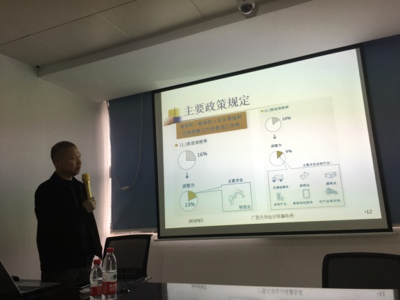 2018年12月中央經(jīng)濟(jì)工作會議、2019年政府工作報告均強(qiáng)調(diào)實施更大規(guī)模的減稅,為適應(yīng)當(dāng)前形勢,廣西天華會計師事務(wù)所在2019年4月3日下午組織財務(wù)人員、業(yè)務(wù)人員學(xué)習(xí)近期稅收優(yōu)惠政策,緊扣財政部、稅務(wù)總局《關(guān)于實施小微企業(yè)普惠性稅收減免政策的通知》(財稅【2019】13號)、財政部、稅務(wù)總局、海關(guān)總署《關(guān)于深化增值稅改革有關(guān)政策的公告》(2019年第39號公告)等文件進(jìn)行學(xué)習(xí)。
