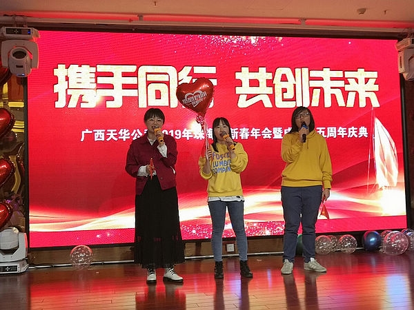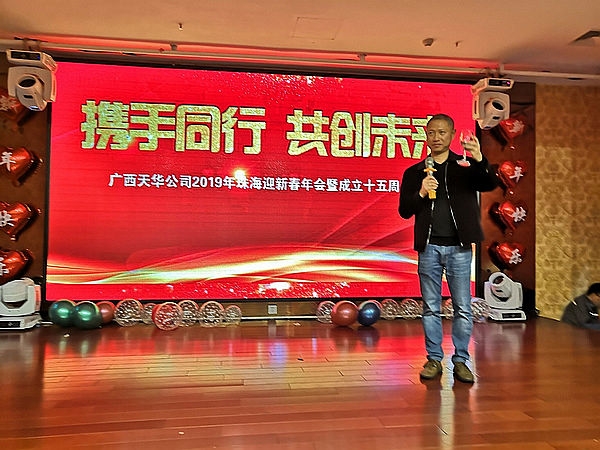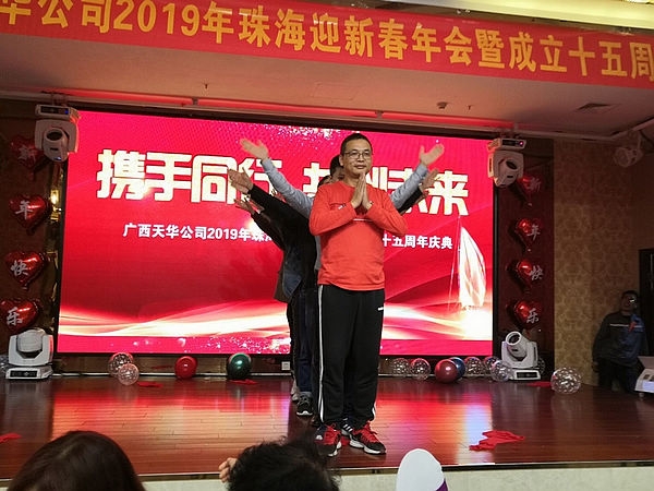 時(shí)至歲末年初,這座“百島之市”、“浪漫之城”仍然如初秋般清爽晴和。1月2日傍晚5時(shí),前來參加活動(dòng)的公司員工、家屬及嘉賓們陸續(xù)匯聚慶典會(huì)場,李驊所長作了簡明扼要的活動(dòng)致辭之后,廣西天華公司2019年迎新春年會(huì)暨十五周年慶典在一片歡樂祥和的氣氛中開始了。