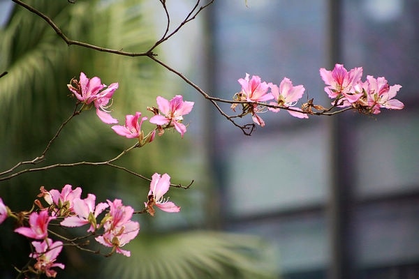 但是大自然按照規(guī)律正常運(yùn)行,春天的腳步正在走近。桃花、梨花慢慢凋落后,櫻花、紫荊花在逐步綻放,春色正濃。柳州近年大力推廣紫荊花種植,每年三月中下旬,滿城紫荊盛開(kāi),賞花游人如織,成為工業(yè)城市一張亮麗的名片。今年的氣候偏暖,花期提前,比往年的花勢(shì)稍遜,但也是姹紫嫣紅,讓人流連。和往年一樣,我拿相機(jī)在辦公樓附近,留下春天的印記。